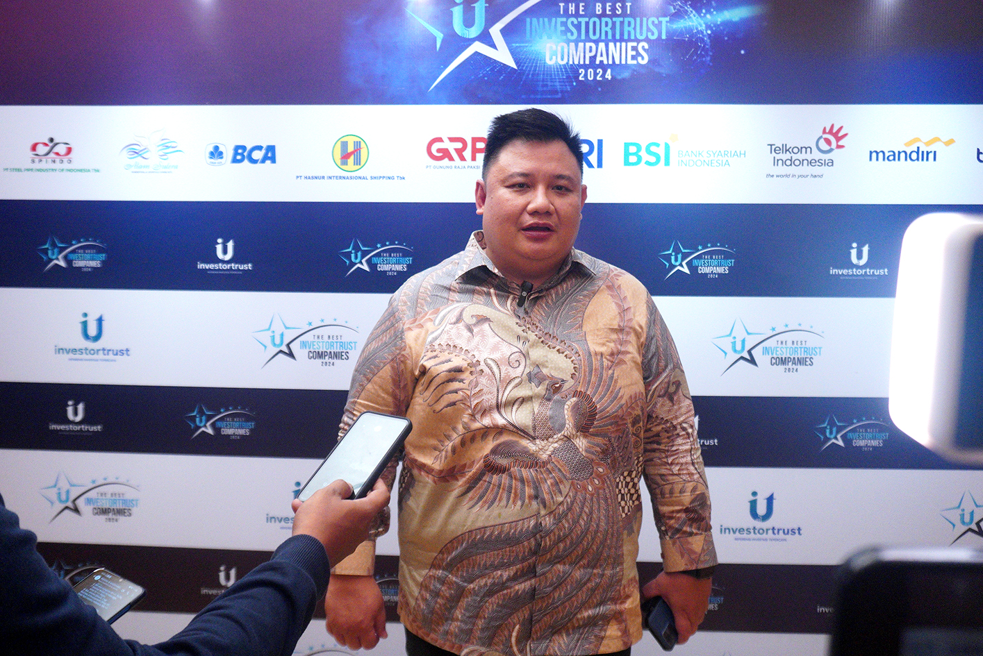 Chief Business & Development Officer PT Steel Pipe Industry Indonesia Tbk Johanes Edward melayani wawancara dengan wartawan di sela acara The Best Investortrust Companies 2024 di Jakarta, Kamis, (16/5/2024). Foto: Investortrust/Elsid Arendra.
