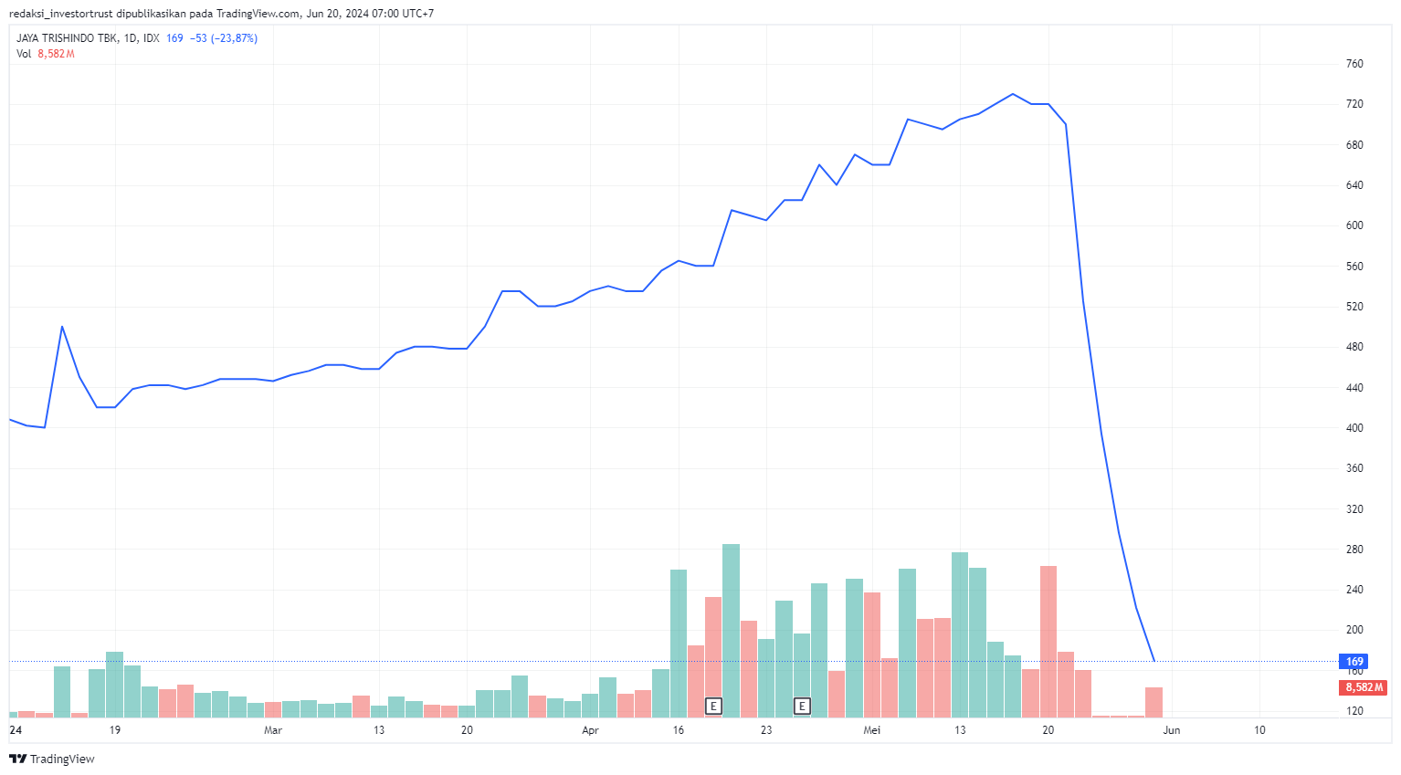 Sebagai catatan, sebelum suspensi saham HELI bertengger pada level Rp 169 per saham pada 31 Mei 2024, anjlok dari level Rp 660 pada perdagangan 2 Mei 2024.