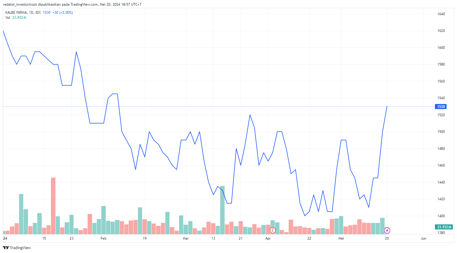 Bagi pelaku pasar yang berminat menikmati dividen KLBF tersebut disarankan untuk membeli atau menahan saham Perseroan, setidaknya hingga periode cum date pada 28 Mei 2024.